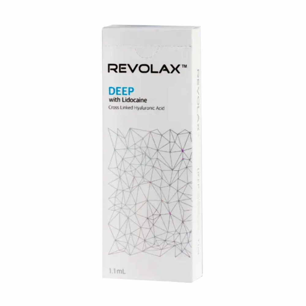 Revolax Deep Lidocaine — стерильный гель на основе гиалуроновой кислоты неживотного происхождения с добавлением 0,3% лидокаина. Препарат выпускается в предварительно заполненных шприцах объемом 1,1 мл, что обеспечивает точность дозирования и удобство применения. В комплект входят две стерилизованные иглы для введения.