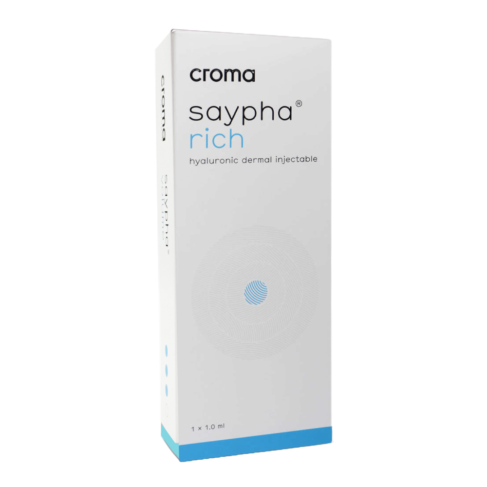 Филлер австрийской компании отлично подходит для решения многих косметологических проблем с кожей не только лица, но и зоны декольте, шеи, кистей рук и всего тела. В составе Saypha Rich содержится большое количество гиалуроновой кислоты. Один мл/ml препарата содержит 18 мг увлажняющих компонентов. Это значительно выше в сравнении с филлерами других производителей. Курс омоложения проводят в 3 процедуры, интервал между ними составляет 14-21 день. Эффект от инъекций сохраняется до 6 месяцев.